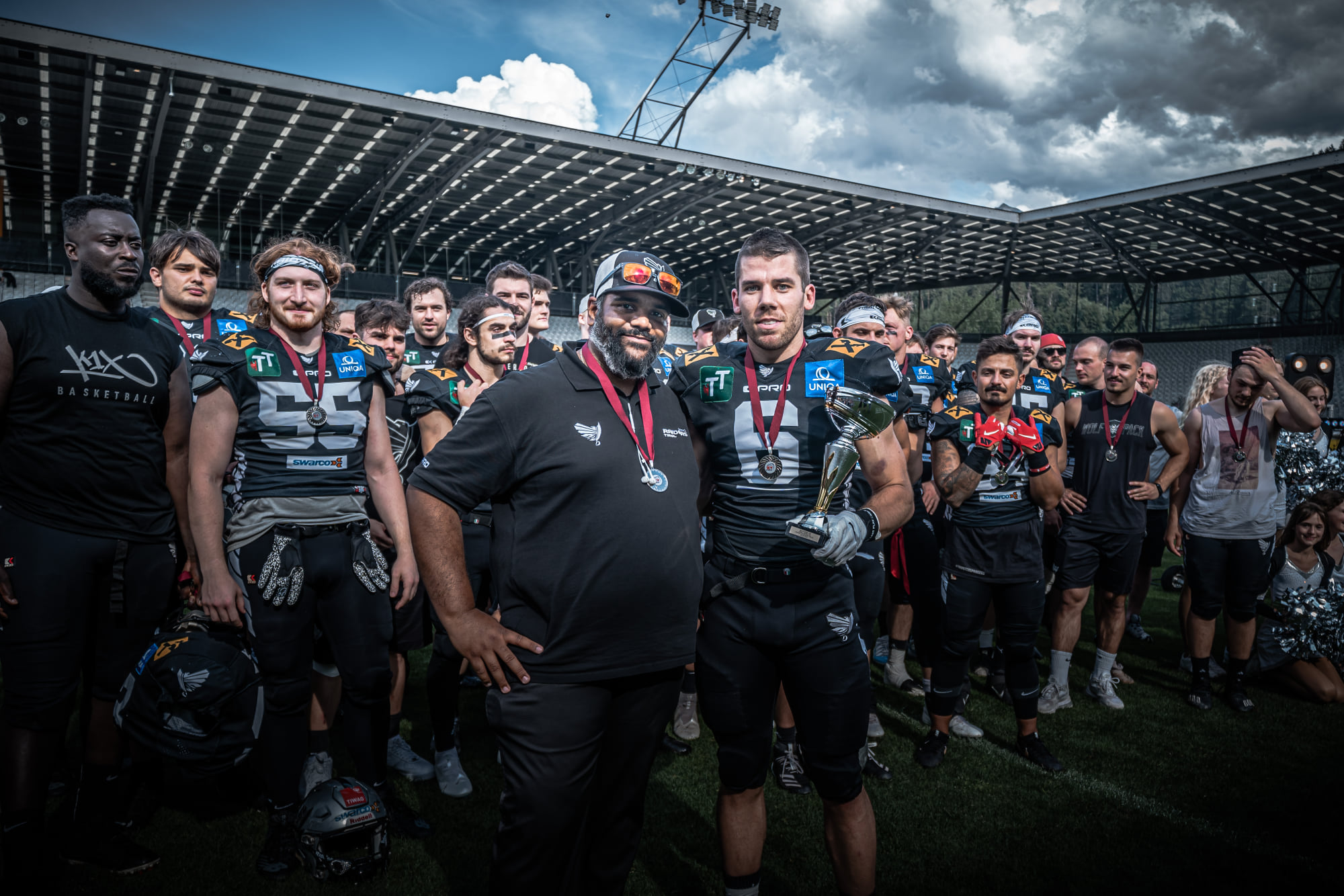 Moritz Böhringer, Unicorns’ tight end has now won his first trophy after returning from the NFL: “I came back to win championships and this is number one of two. We’re going back, trying to win GFL too“. He also shared his view on how football in the NFL differs from the game played in Europe: “It’s definitely faster and players have more experience and more time (on the field). The defenses play different looks so especially as a tight end you have to prepare more for that and it’s a little easier (in Europe).